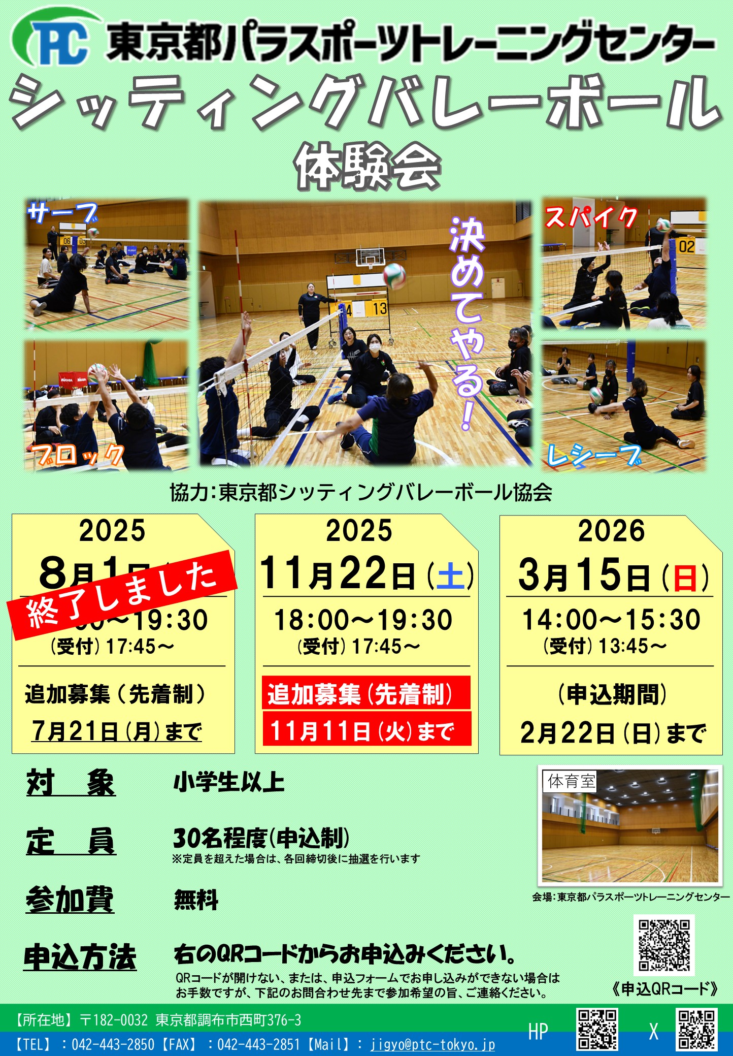 体験会では、基本的な動き「サーブ・レシーブ・スパイクなど」を行い、最後はミニゲームを実施予定。
