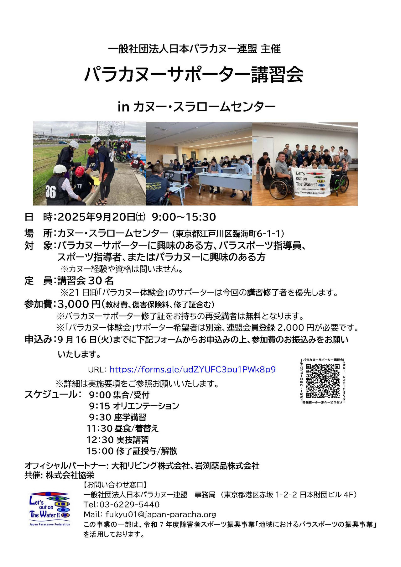 パラカヌーサポーターに興味のある方、パラスポーツ指導員