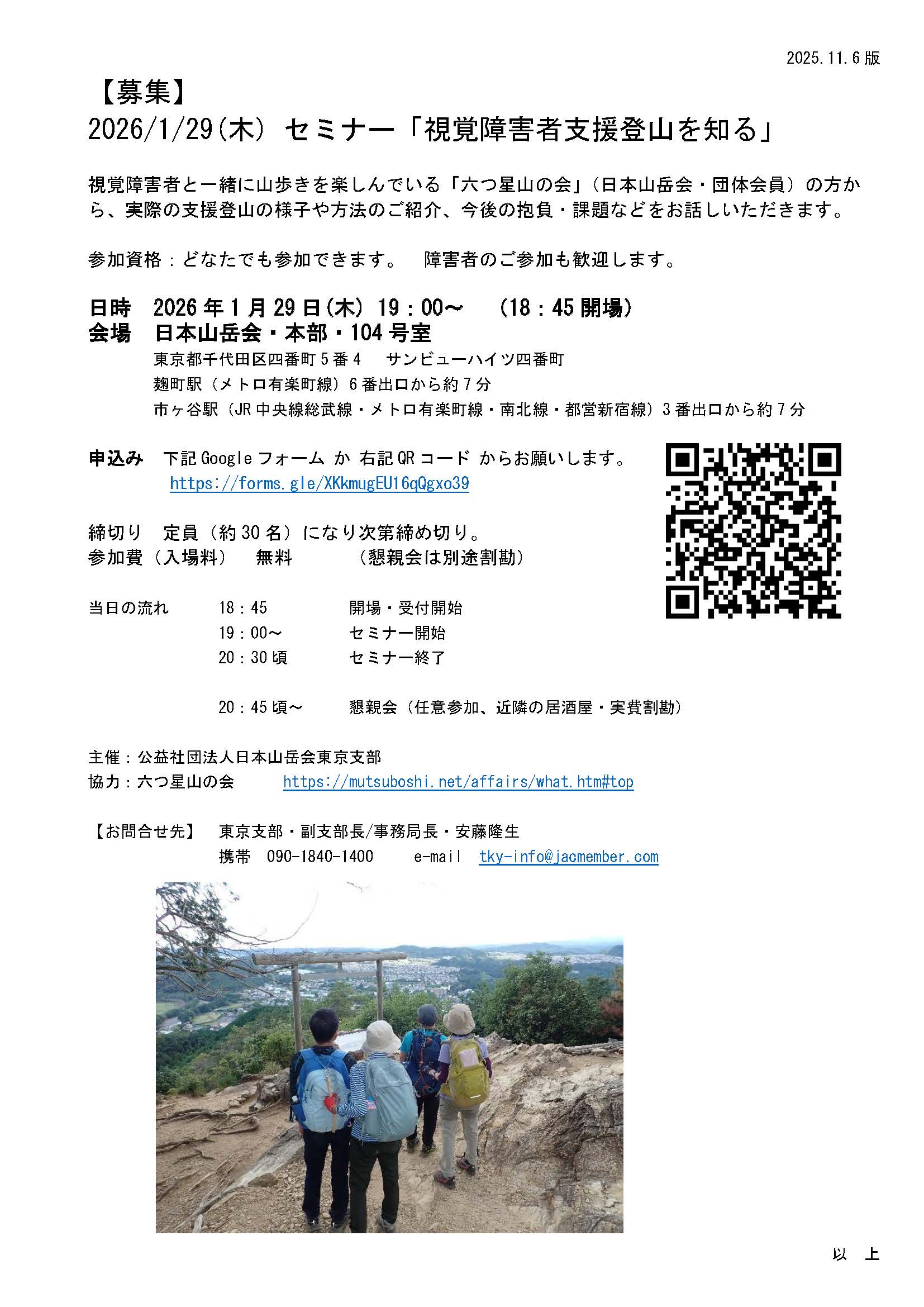 ▼主催:公益社団法人日本山岳会東京支部
