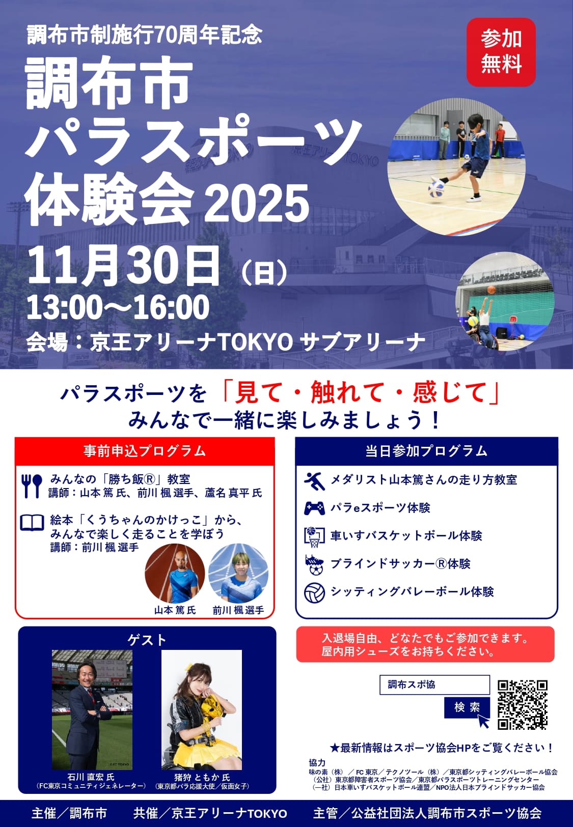競技体験のほか、FC東京コミュニティジェネレーターの石川直宏氏や東京都パラ応援大使の猪狩ともか氏をゲストに迎え、参加者の皆様と一緒にパラスポーツを体験していただきます!