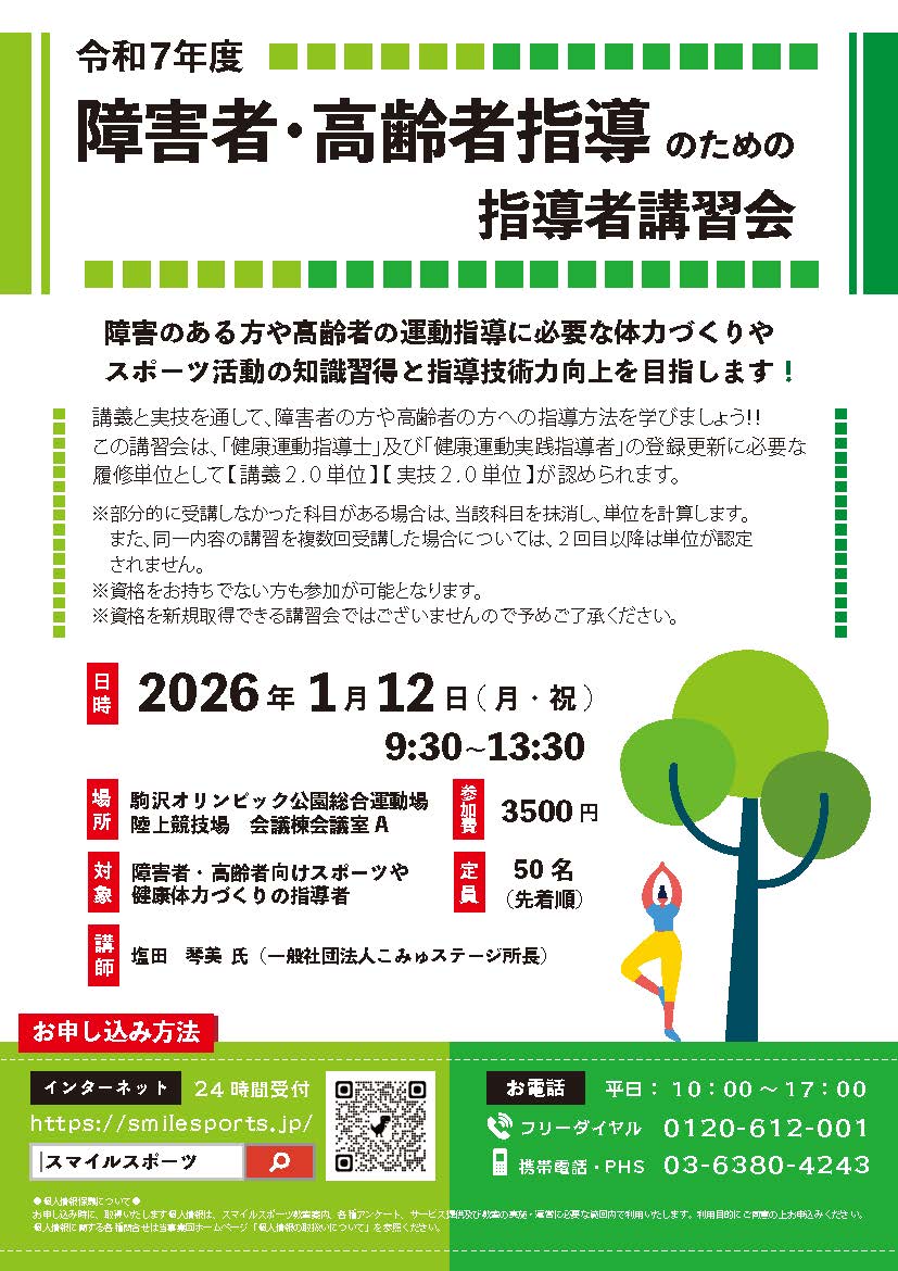 対象:障害者や高齢者向けスポーツや健康体力づくりの指導者