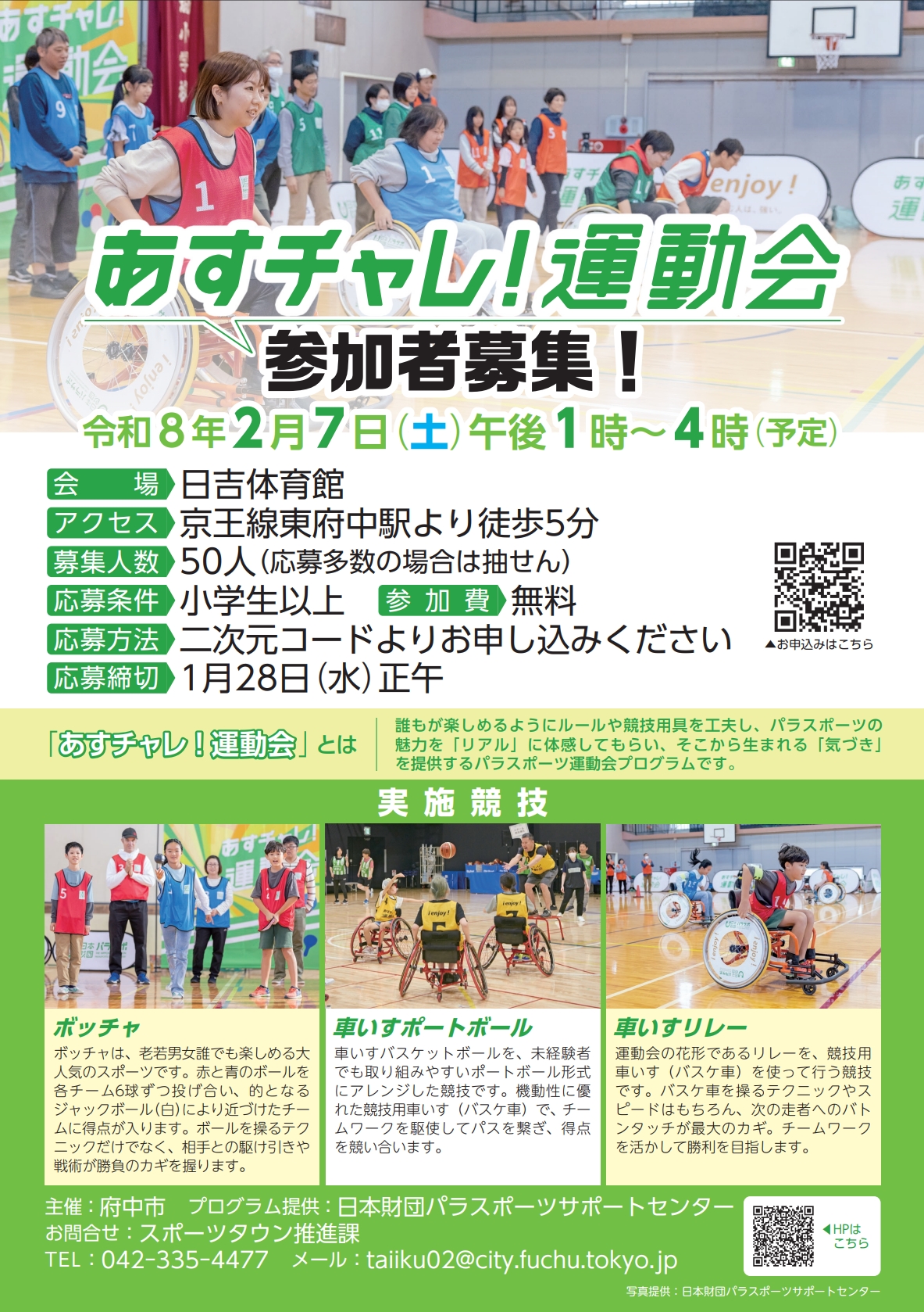 市では、障害の有無にかかわらず、誰もが障害者スポーツにふれるきっかけづくりとして、日本財団パラスポーツサポートセンターが提供するパラスポーツ体験プログラム「あすチャレ!運動会」を開催します。